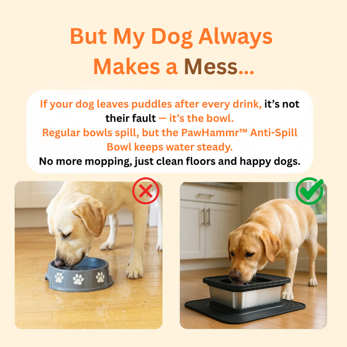 Unlike cheap plastic or flimsy “spill-proof” designs, the PawHammr Stainless Steel Bowl keeps water steady, clean, and easy to drink — encouraging healthier habits and keeping your floors dry.