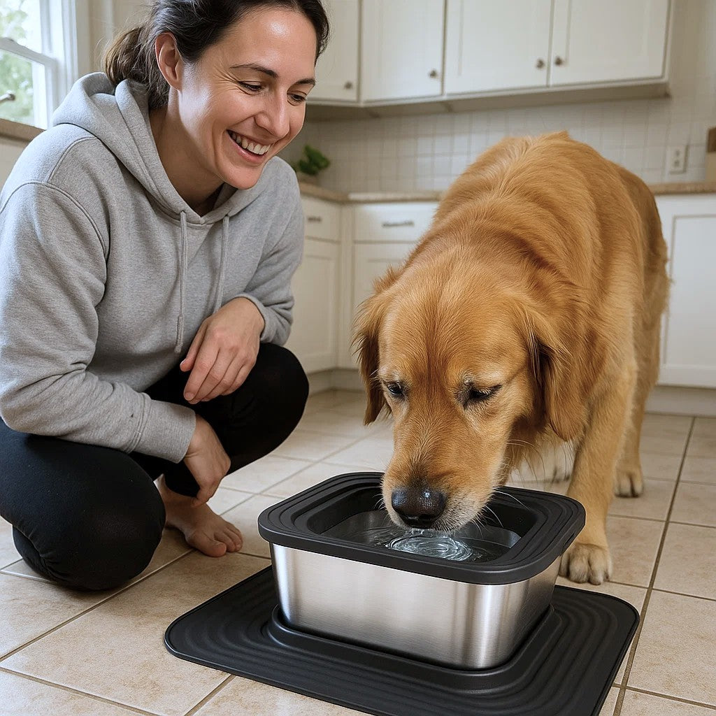 “My Golden used to leave puddles all over the kitchen. I was mopping daily. With this bowl, the water actually stays inside — my floors are finally dry, and he drinks comfortably. Total lifesaver.”